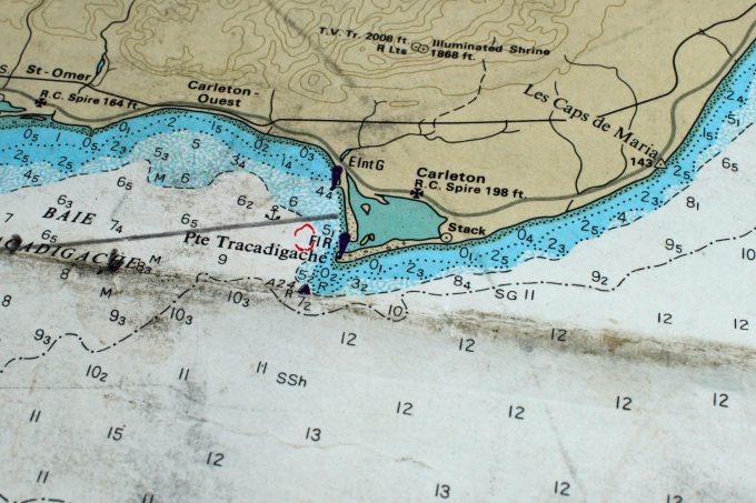 2. Notes de terrain : emplacement approximatif du trou à Crapauds sur une carte marine.